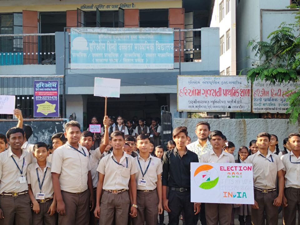 આવનાર ૨૦૨૪ની ચૂંટણી અંતર્ગત હરિઓમ વિદ્યાલય ખોખરા મણિનગર શાળાના વિદ્યાર્થીઓ દ્વારા મતદાન જાગૃતિ વર્કશોપ સેમિનારનું અને રેલીનું આયોજન કરવામાં આવ્યું હતું. શાળાના તમામ શિક્ષકો અને વિદ્યાર્થીઓએ મતદાન સ્લોગન બેનર સાથે મતદાન કરવું જોઈએ.
