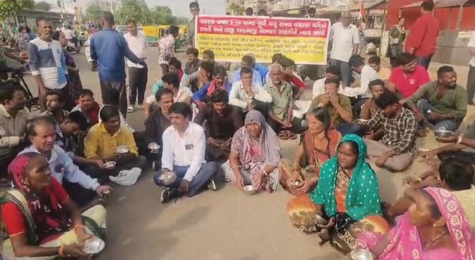 છેલ્લા ૧૫ દિવસથી દબાણ ખાતાના અમાનુષી અત્યાચાર ના પરિણામે ભૂખ મરા ના ખપ્પર મા હોમાઈ ગયેલા ગયેલા પાથરણ બજાર વાળા દ્વારા ભીખ માગવાનો પ્રતિકાત્મક કાર્યક્રમ યોજી રોજીરોટી શરૂ કરવા કરવામાં આવેલ માંગ