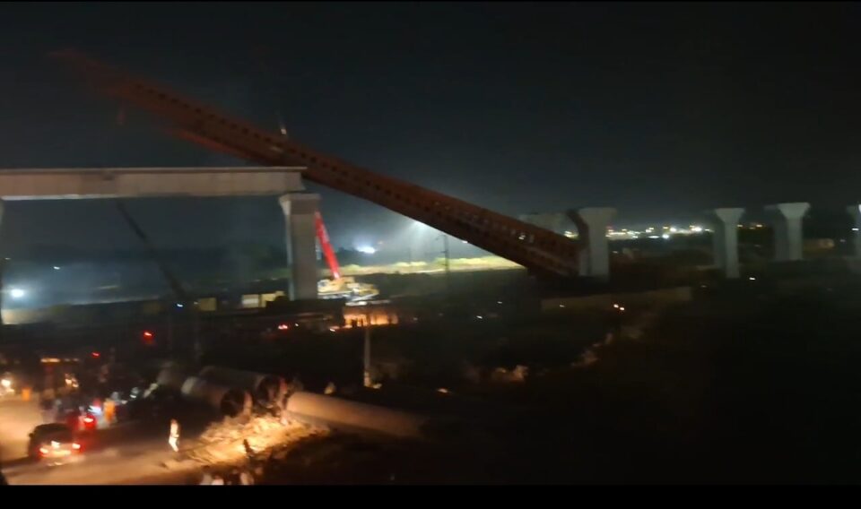 અમદાવાદના વટવા હાથીજણ વિસ્તારમાં રોપડા બ્રિજ નજીક એકાએક બુલેટ ટ્રેનની કામગીરી દરમિયાન ક્રેન ધસી પડી હતી. જેના કારણે જોરદાર અવાજ થતા આસપાસના લોકો દોડી આવ્યા હતા