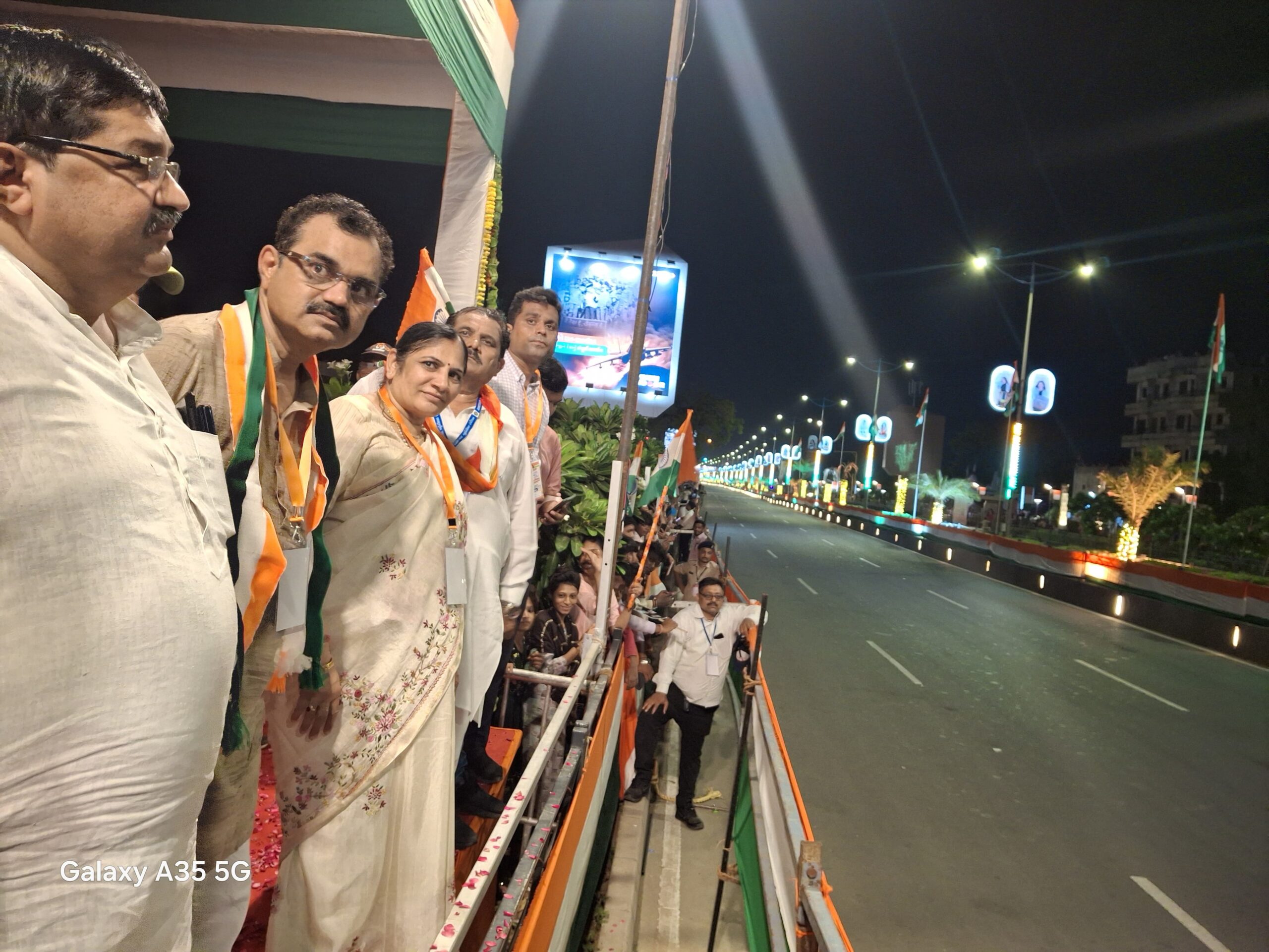વડાપ્રધાન નરેન્દ્રભાઈના રોડ-શો દરમિયાન લોકો રસ્તાની બંને તરફ હાથમાં તિરંગા સાથે ઉપસ્થિત રહીને PM મોદીને ઉષ્માભેર આવકારી રહ્યા હતા. વડાપ્રધાન સાથે મુખ્યમંત્રી ભૂપેન્દ્રભાઈ પટેલ અને ભાજપ પ્રદેશ પ્રમુખ સી.આર. પાટીલ અને બાપુનગરના ધારાસભ્ય શ્રી દિનેશસિંહ કુશવાહ અને તેમના કાર્યકર્તાઓ પણ ઉપસ્થિત રહ્યા હતા. રોડ શોના રૂટ પર 19 જેટલા સ્ટેજ તૈયાર કરવામાં આવ્યા હતા, જ્યાં અલગ અલગ ધર્મના નાગરિકો દ્વારા PM મોદીનું સ્વાગત કરવામાં આવ્યું હતું. આ ભવ્ય સ્વાગતથી સમગ્ર અમદાવાદ જાણે રાષ્ટ્રભક્તિના રંગે રંગાઈ ગયું હતું.