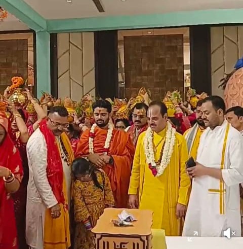 ઉત્તર ભારતીય વિકાસ પરિષદના પ્રદેશ પ્રમુખ તરીકે જવાબદારી સંભાળી રહેલા ઉદાર દાનવીર શ્રી મહેશ સિંહ કુશવાહાજી દ્વારા ૩૦ મે ૨૦૨૫ થી મથુરાના વૃંદાવન ધામમાં ભગવદ કથાનું આયોજન કરવામાં આવ્યું છે,ભગવદ કથાના પ્રથમ દિવસે કળશ યાત્રા (પોથી યાત્રા) ની સુંદર અને પવિત્ર ઝલક જોવા મળી હતી.