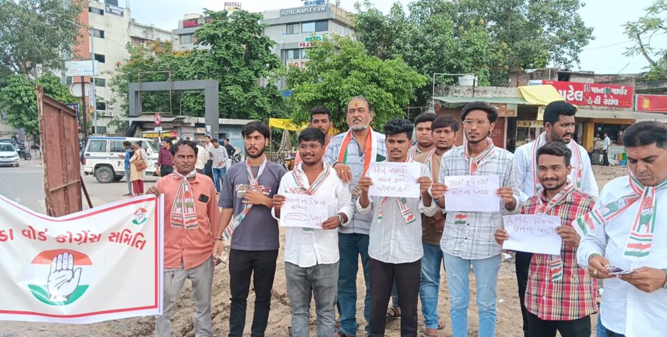 વડોદરા ખાતે પુલ તૂટી પડતા અને શહેરમાં ઠેરઠેર રસ્તાઓમાં મસ મોટા ભુવા પડી ગયા હોવાના કારણે  કોંગ્રેસ સમિતિ દ્વારા શહેરમાં ઠેરઠેર દેખાવો કરવામાં આવ્યો હતો.