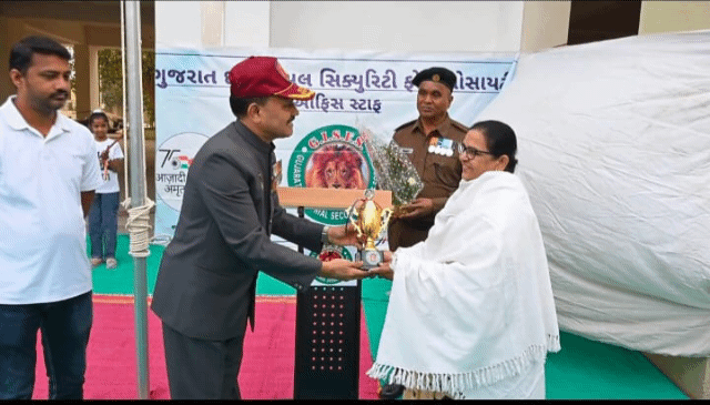 જીઆઇએસએફએસ ની વડી કચેરી ખાતે, બહુમાળી ભવન, ગિરધરનગર, અસારવા,અમદાવાદ ખાતે 26 મી જાન્યુઆરી 2026 , પ્રજાસત્તાક દિવસે પ્રથમ વખત GISFS કચેરી ખાતે ધ્વજવંદન સીઈઓ શ્રી પી.જી. ધારૈયા સાહેબ ના માર્ગદર્શન હેઠળ જીઆઈએસએફએસ ના ઓફિસ સ્ટાફ, સિક્યુરિટી જવાનોએ તેમજ એસએસઆઈ, શ્રી ગિરીશ ઠાકુર એ પોતાની ટીમ સાથે રાષ્ટ્રગીત સાથે ધ્વજ વંદન કરેલ હતું. બીજે મેડિકલ કોલેજ હોસ્ટેલ ખાતે ફરજ બજાવતા પ્લેન ક્રેશ દુર્ઘટના માં ચાલુ ફરજ દોરાન ને ઘાયલ થતા અવસાન પામનાર સ્વર્ગીય શ્રી રાજેન્દ્ર પાટનકર ના ધર્મ પત્નીને શ્રીમતી મીનાબેન ને સ્મૃતિ ચિન્હ આપીને સન્માન કરેલ હતું. એસ.એસ.આઈ શ્રી ગિરીશ એમ.એમ.ઠાકુર તેમજ શ્રી દિનેશ મારુ અને એમની ટીમે શ્રી પાટનકર પરિવાર પોતાનું પરિવાર સમજીને દિલ થી હમેશા લાગણી વ્યક્ત કરી હતી. ઈએસઆઈસી તરફ થી શ્રી સ્વર્ગીય રાજેન્દ્ર પાટનકર ના ધર્મ પત્ની મીનાબેન આજીવન પેન્શન ચાલુ કરાવવા માં શ્રી ગીરીશ એમ.ઠાકુર સાહેબ ખૂબજ મહેનત કરી હતી.અને એમના ફેમિલી ને લાઈફ ટાઈમ સુધી પેન્શન ચાલુ થયેલ છે.શ્રી પીજી ધારૈયા સાહેબ અને એસ.એસ.આઈ.શ્રી ગિરીશ એમ. ઠાકુર સાહેબ ની કામગીરી ને મીડિયા પરિવાર સલામ કરીએ છીએ.