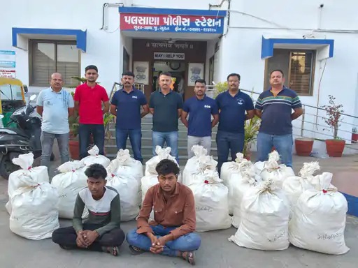 સુરત જિલ્લા પલસાણા ચાર રસ્તા પાસેથી SOGએ 1.76 કરોડનો ગાંજો કબ્જે કર્યો, સુરત રેન્જ આઈજી પ્રેમવીર સિંહ અને સુરત ગ્રામ્ય પોલીસ દ્વારા આંતરરાજ્ય ડ્રગ્સ રેકેટનો પર્દાફાશ, 2 આરોપી પકડાયા,આરોપીઓ 10 દિવસના રિમાન્ડ પર ગુજરાતમાં સ્થાનિક સ્વરાજની ચૂંટણીના માહોલ વચ્ચે સુરત ગ્રામ્ય SOGએ મોટી કાર્યવાહી કરી છે. પોલીસે પલસાણા ચાર રસ્તા પાસેથી 1.76 કરોડ રૂપિયાના મુદ્દામાલ સાથે આંતરરાજ્ય ગાંજા રેકેટનો પર્દાફાશ કર્યો છે. આ ઓપરેશનમાં 321 કિલોથી વધુ ગાંજો જપ્ત કરવામાં આવ્યો છે અને બે આરોપીઓની ધરપકડ કરવામાં આવી છે.